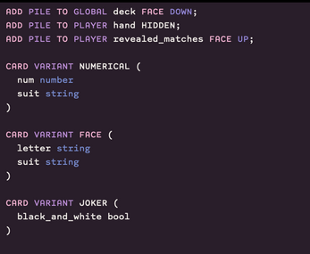 For representing physical games or 3D scenes, there are plenty of options like Unity or Unreal. There, however, isn't an abstract tool for developing card games... until now!